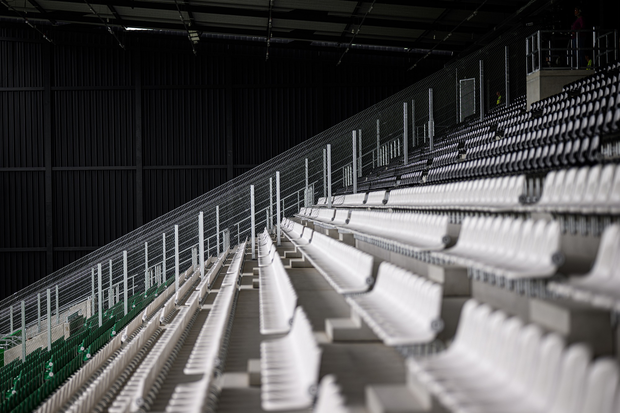 „Der notwendige Pufferblock wird – anders als zunächst geplant – nicht mit einem mobilen Rollzaun, sondern mit einem festen Zaun ausgebildet und somit auch bei Grün- und Gelb-Spielen eine Pufferfunktion zwischen Heim- und Gästefans erfüllen. Dadurch entfallen zwar dauerhaft knapp 150 Plätze im Gästeblock, die Plätze werden jedoch unter Beachtung der maximal möglichen Gesamtkapazität des Stadions im Heimbereich ersetzt werden“, erklärt der für das Stadion zuständige Geschäftsführer Dr. Markus Sass.